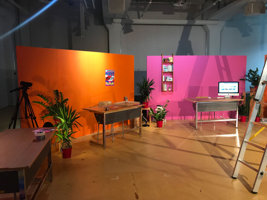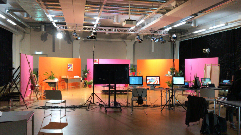 Corona fordert uns heraus, kreative Lösungen zu finden, damit wir unser Leben und unsere Arbeit fortführen können. Als Alternative zur analogen Ausstellung der Master-Abschlussarbeiten im Fachbereich Kunst gestaltete ich das Setting der virtuellen Ausstellung in der Art eines Fernsehstudios und führte während der Live-Schaltung Regie.
